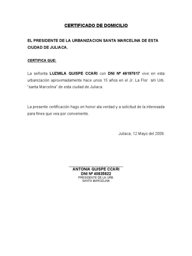 Modelo Certificado De Domicilio